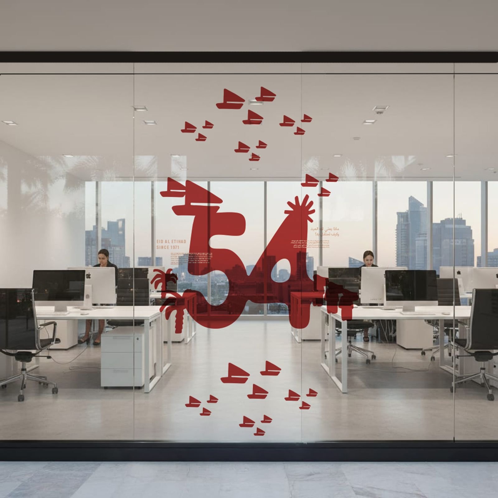 • Floor Stickers: Directional, decorative or message-based floor graphics in UAE colors.